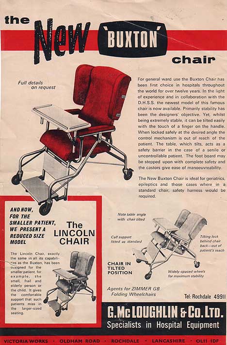 old advertisements for a super-duper hi-tec chair (the "Buxton"